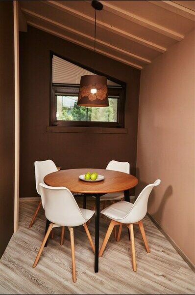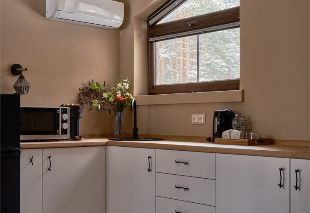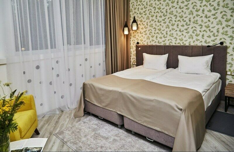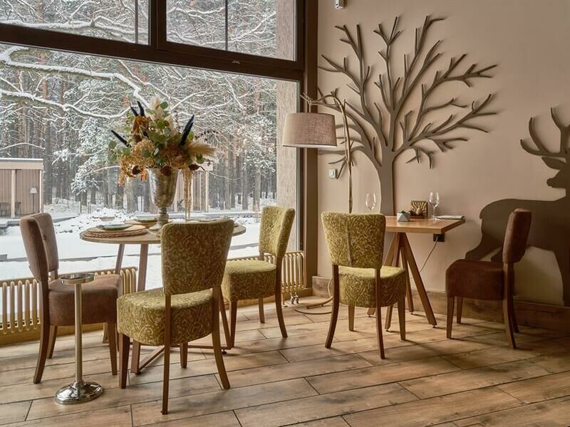 Все номера оснащены всем необходимым: сейф, письменный стол, чайник, холодильник, фен, косметические принадлежности. На территории работает шикарный ресторан "Кедр" с потрясающей кухней, летней верандой, детским меню и игровым уголком. На небольшой территории отеля в сосновом бору расположился каскадный водоем, с комфортными беседками. Это отличная фотозона и замечательное место для прогулок. Для любителей погреться есть сауна-бочка; для любителей спорта- настольный теннис, баскетбольное кольцо и мини-футбол. Вся территория оснащена Wi-Fi.