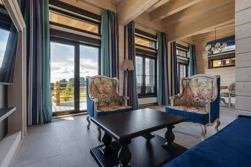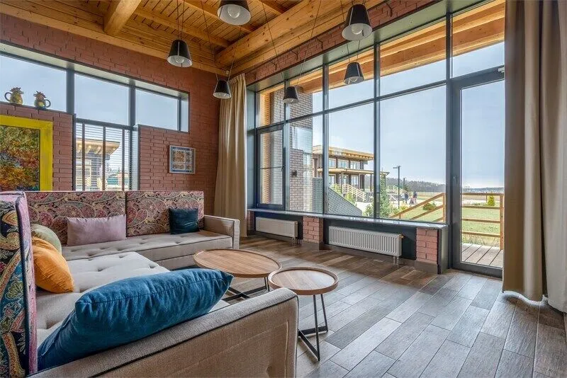 Великолепный двухкомнатный таунхаус люкс с удобной планировкой, специально предназначенный для семейного отдыха, предлагает потрясающие виды на Рузское водохранилище. Расположитесь с книгой на широком угловом диване в гостиной или на удобных креслах просторного внутреннего двора — идеального места для отдыха на свежем воздухе.
