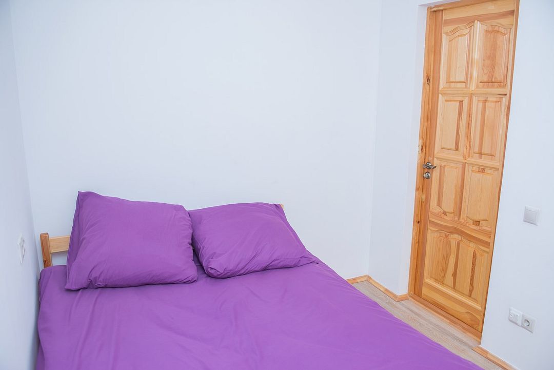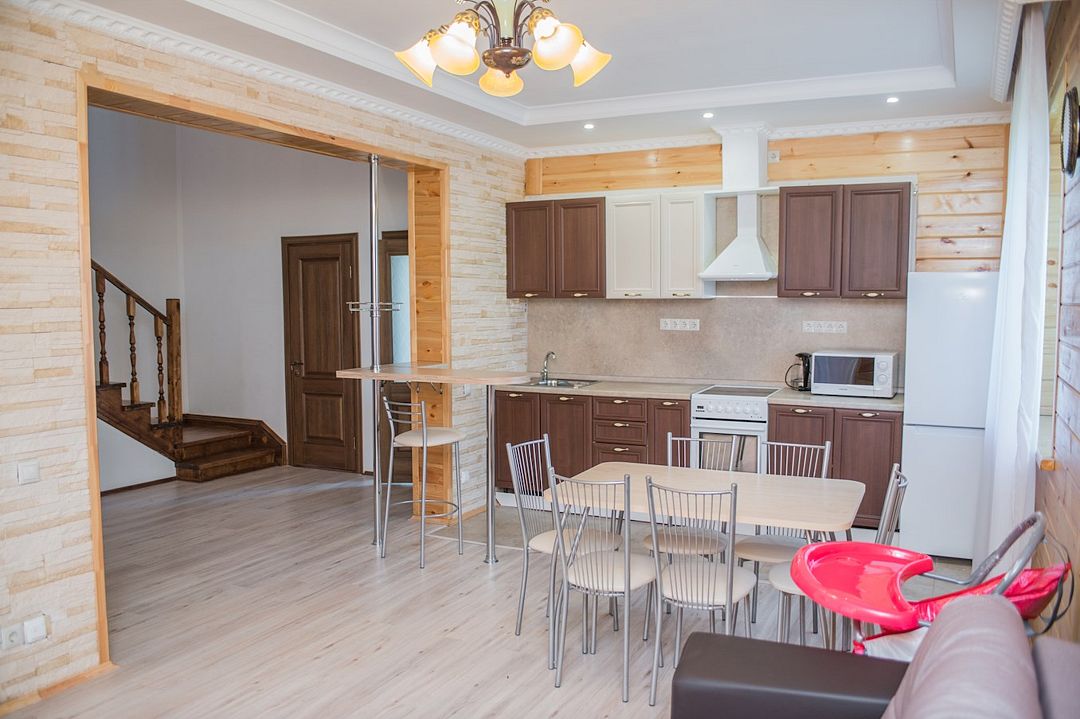 Двухуровневый домик. На 1-м этаже располагается кухня (без плиты) и зона отдыха, на 2-м этаже спальня с двумя кроватями: двуспальной и отдельной односпальной кроватью. В таунхаусе 1 санузел.