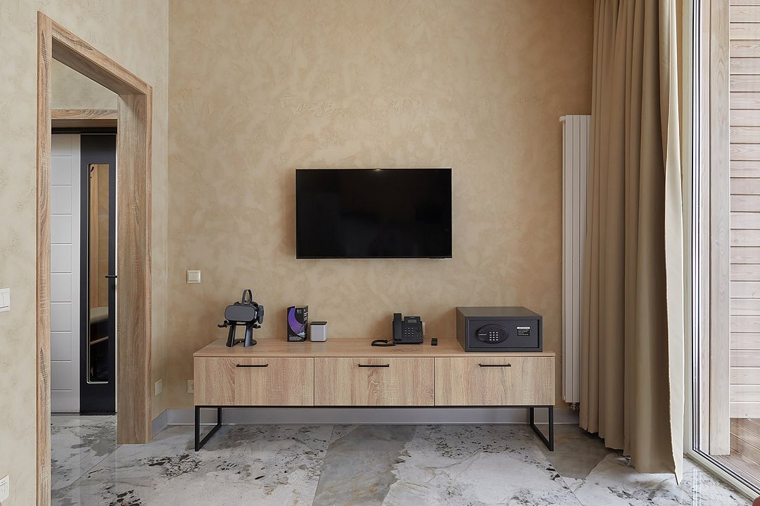 Wi-Fi, телефон, кондиционер, светильник, фен, санузел, халаты, банные полотенца, тапочки, гигиенические средства, балкон, двуспальная кровать, шкаф для одежды, вешалки, багажная тумба, зеркало, мини-бар, информационная карта, меню, раковина, ковровое покрытие, душ, стул, тумба, цифровое тв, телевизор с плоским экраном, номер для некурящих, без питомцевВ гостиничном номере