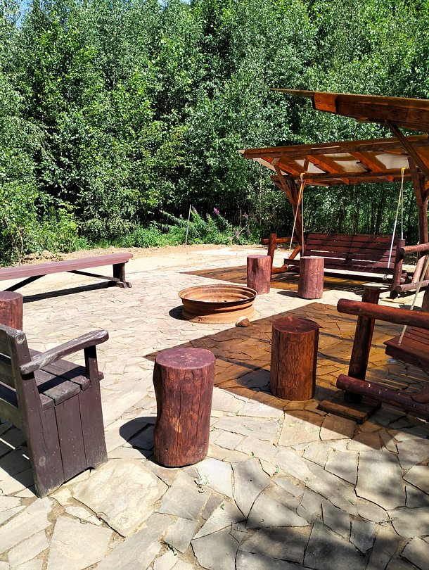 Костровая зона с уютными качелями и креслами для комфортного времяпровождения. Здесь Вы можете насладиться ароматным чаем у костра, устроить гриль-вечеринку или организовать небольшой пикник в кругу друзей. Приходите встречать рассветы и провожать закаты в уютной зоне отдых