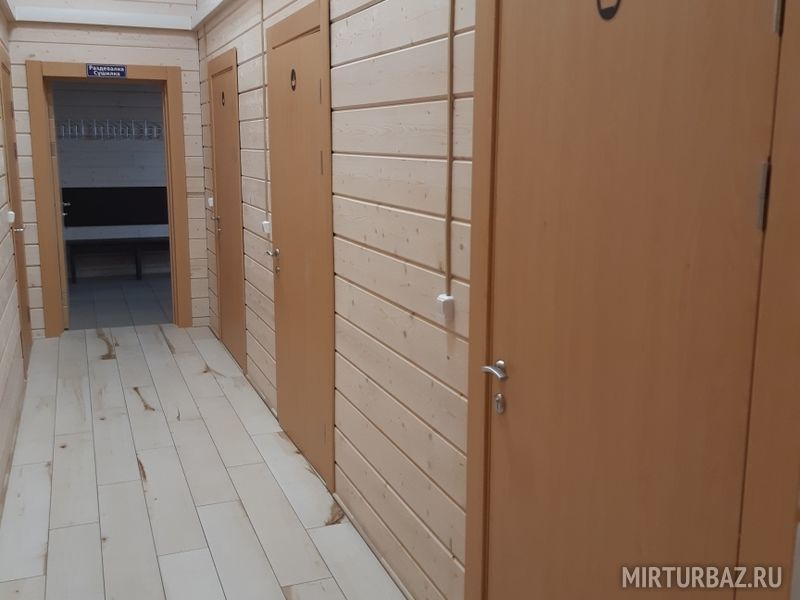 Каждый из гостевых домов оснащен уютной гостиной комнатой с диваном, большим обеденным столом, телевизором, кухонным уголком, оборудованным бытовой техникой (плитой, холодильником, посудомоечной машиной, микроволновой печью, чайником, кофеваркой, кухонными принадлежности, посудой), тремя совмещенными с душевой комнатой санузлами, стиральной машиной, теплыми полами, сервисной комнатой для хранения и подготовки спортивного инвентаря, доступом в интернет (Wi-Fi бесплатно).