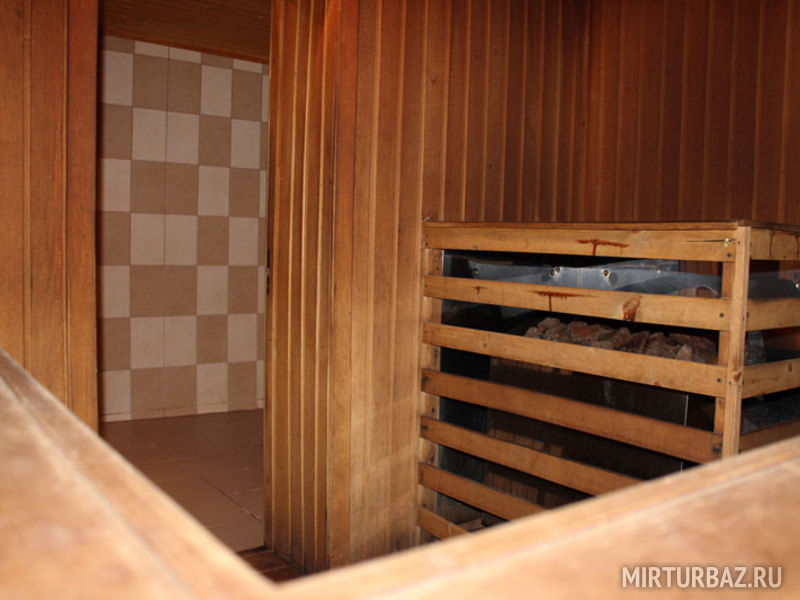 Сауна, гостиная, кухня, холодильник, большой зал, спутниковое ТВ, 2 душа, 2 туалета.