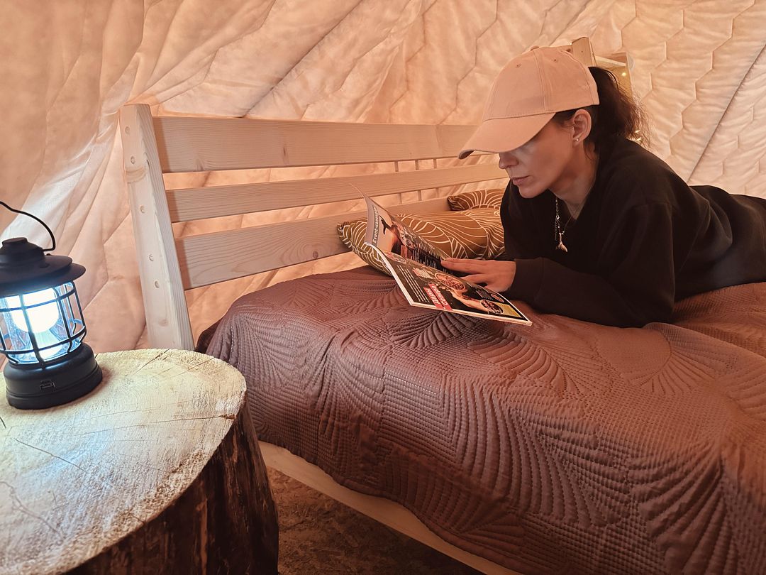 В глэмпинге созданы все условия для незабываемого отдыха вдали от городского шума и суеты. Здесь царит умиротворение, а воздух наполнен свежестью. Гости смогут отдохнуть и вдохновиться, наслаждаясь красотой окружающей природы — бескрайних просторов лесотундры.
