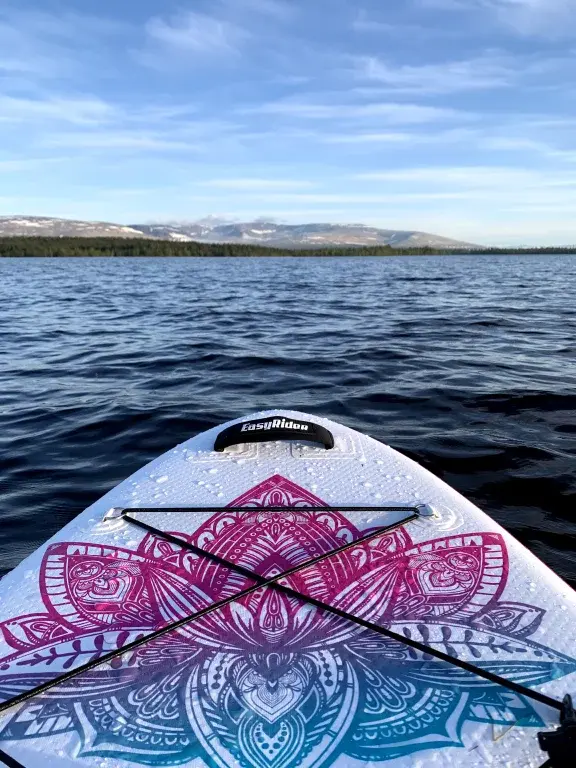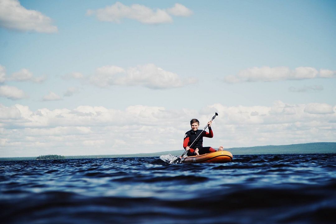 Гости могут испытать ни с чем не сравнимое удовольствие, катаясь на сап-бордах по глади чистейшего озера. Только представьте: вы плывете на доске, наслаждаясь закатом, а через полчаса встречаете рассвет с захватывающим видом на горы. И все это в полярный день, который длится в июне и июле! А в августе и сентябре вы можете стать свидетелем северного сияния, отражающегося в воде.