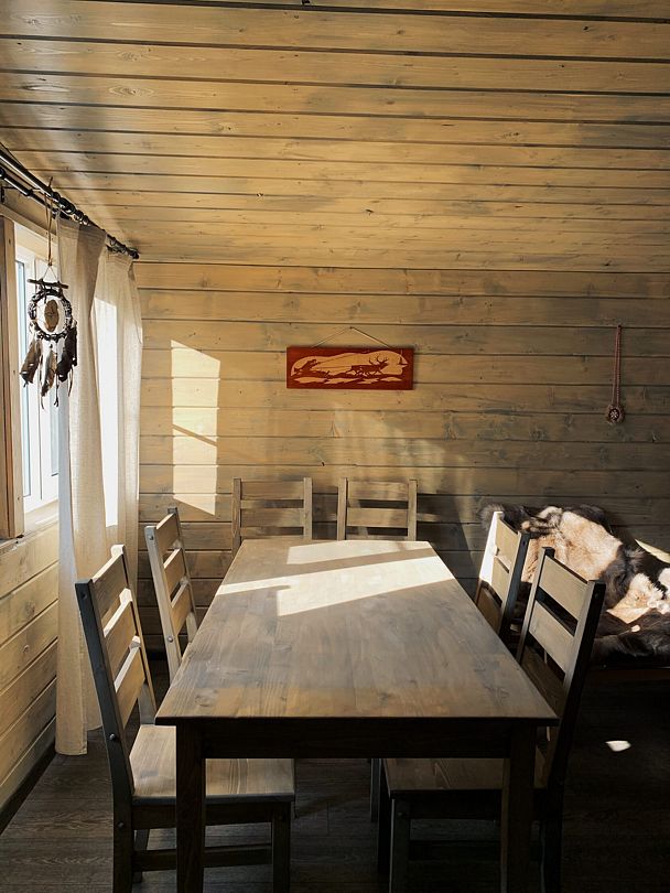 Зимой предоставляется трансфер на снегоходе с санями от трассы (4 км) до глэмпинга и обратно, а также снегоступы на весь период проживания и фонарики.