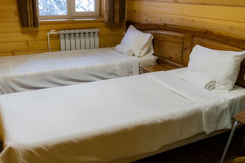 - пять спальных комнат, в каждой по две односпальные кровати;