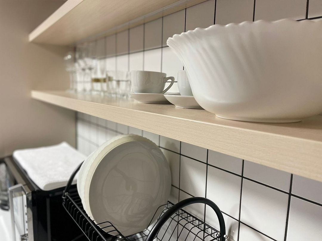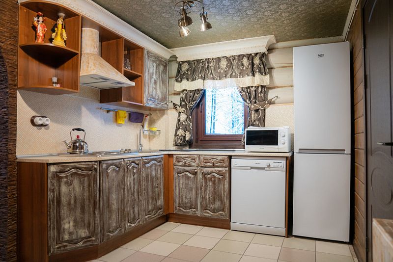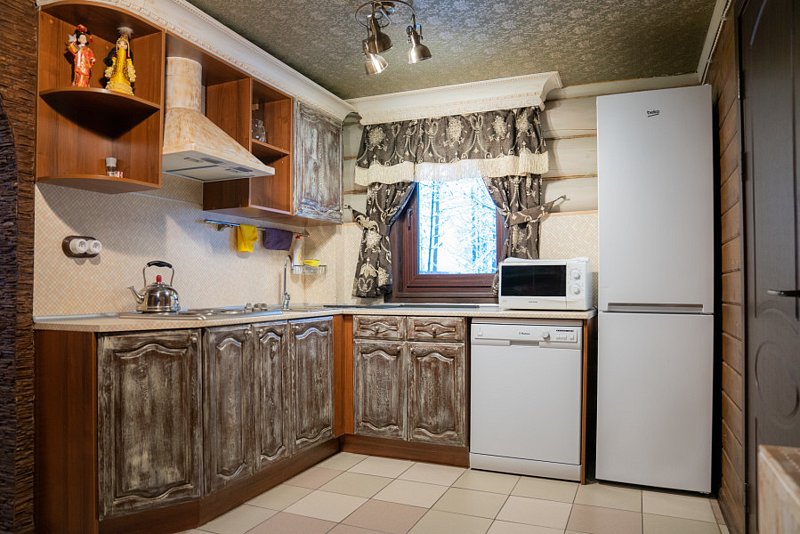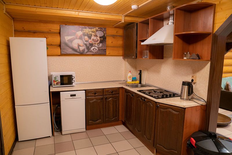 Техническое оснащение: варочная панель, холодильник, СВЧ-печь, чайник, посудомоечная машина, сушильный шкаф для одежды, ЖК-телевизор, музыкальный центр, фен.