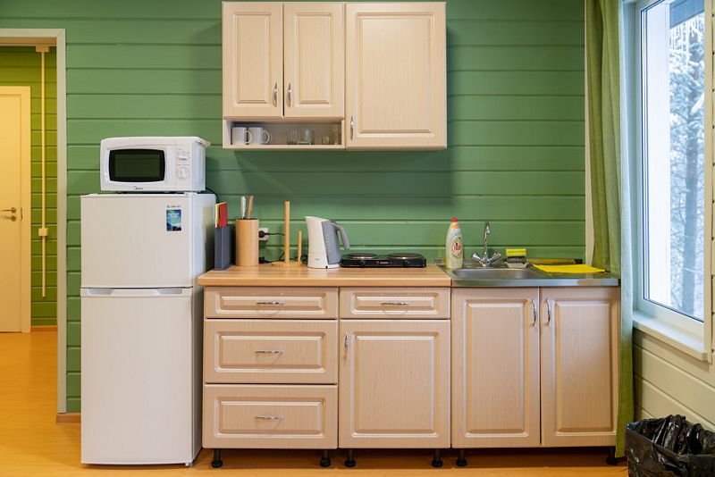 - кухонная зона (мини-холодильник, СВЧ, чайник);