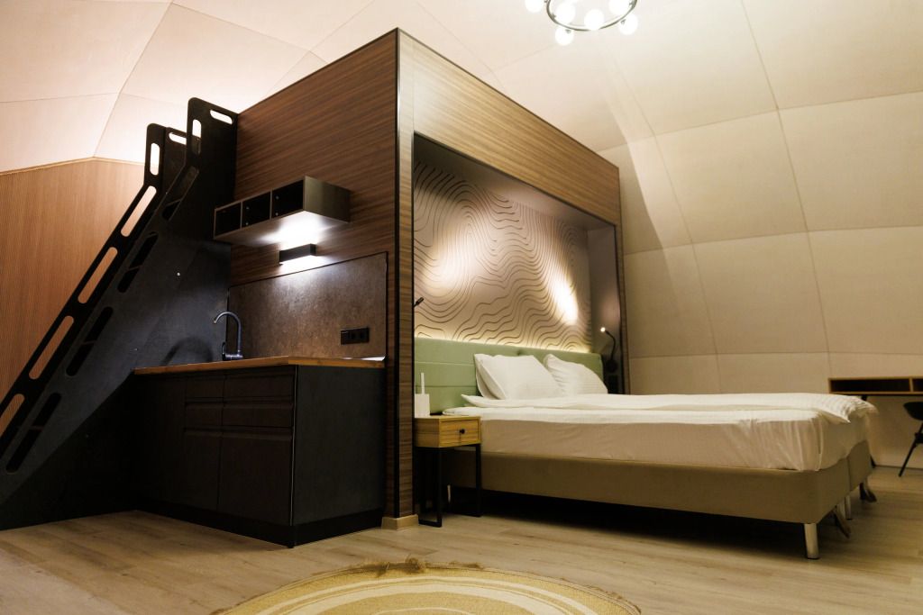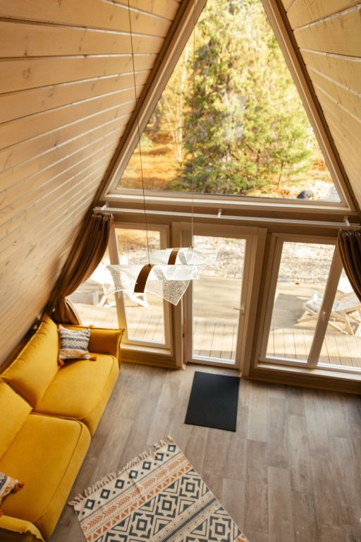 Двухместный семейный коттедж с красивым видом из окна двуспальная кровать