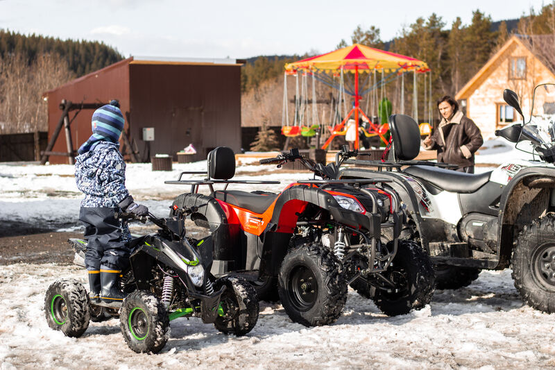 Для тех, кто любит активный отдых - мы предлагаем сафари на снегоходах и квадроциклах, снежный банан, а также катание в оленьей упряжкепо живописному Северному лесу.