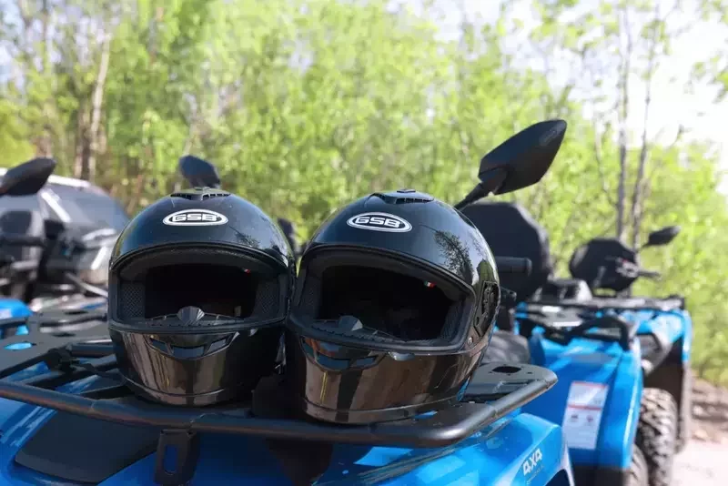 При аренде квадроциклов проводится инструктаж и предоставляется амуниция.