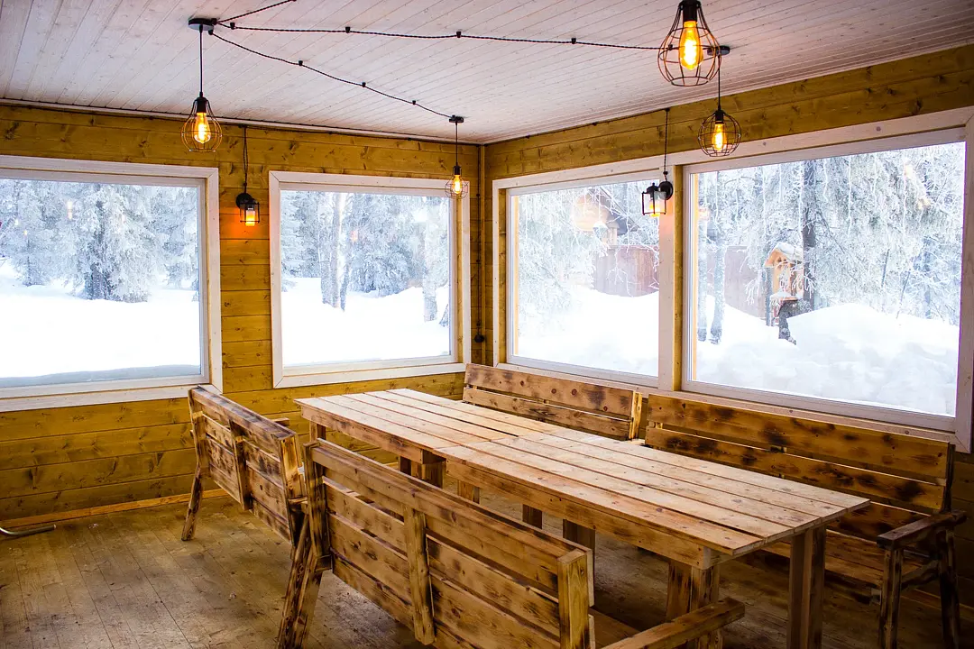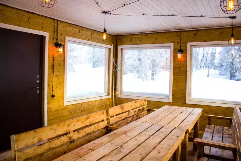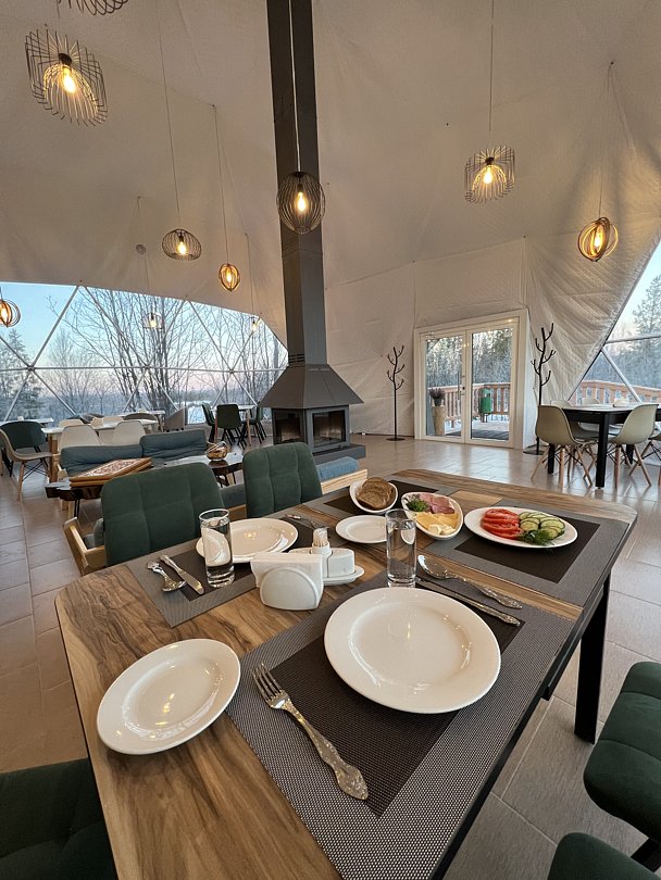 Кафе вместимостью 140 гостей, где можно провести вечер под уютное потрескивание дров в камине и полюбоваться северной природой через панорамные окна. Откройте для себя необычные и самобытные блюда северной кухни. Завтраки и обеды по заявке.
