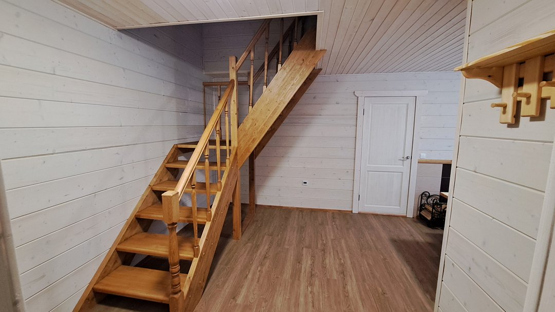 Коттедж построен из экологически чистого материала, хорошо отапливается, есть горячее водоснабжение. В доме есть ванная комната с душем и бесплатными туалетно-косметическими принадлежностями. Площадь 36 м2, рассчитан на комфортное размещение до 4 человек.