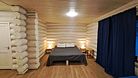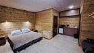 Двухэтажный коттедж с собственной сауной для комфортного отдыха большой семьёй или дружеской компанией. Первый этаж каждого коттеджа разделён на кухонную зону и зону сауны, второй этаж отведён под три отдельные спальные комнаты.