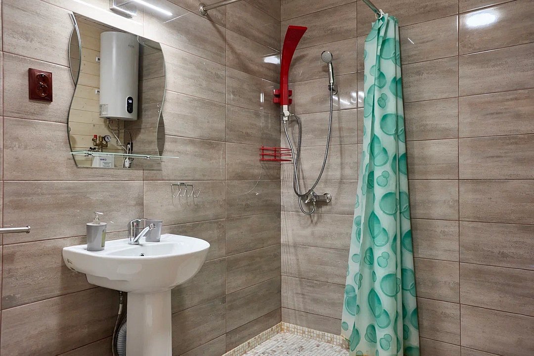 - санузел (душевая кабина, туалет, раковина, набор полотенец);