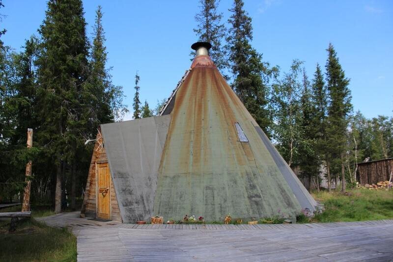 Настоящий Чум – место, где все гости собираются за трапезой, а также, здесь проходят задушевные вечерние посиделки, справляются торжества. Большой деревянный рубленный стол, настоящий очаг, настил из оленьих шкур, глиняная посуда – все это создает незабываемую атмосферу. Чум открыт круглосуточно, в любое время можно выпить горячего чаю, кофе.