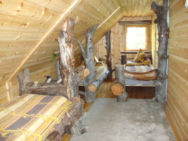 Рубленный дом из сруба в котором стоит большая русская печь, согревающая Вас всё пребывание в доме. В доме установлены деревянные кровати из северной серебристой сосны, умывальник, маленький стол. На базе имеется 3 таких комнаты. Идеально подходит для компании друзей, единомышленников, а также семейных пар с детьми.