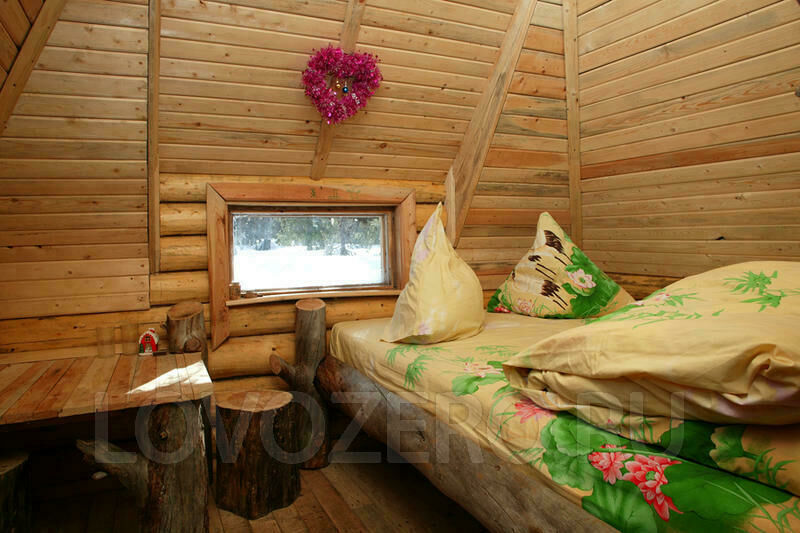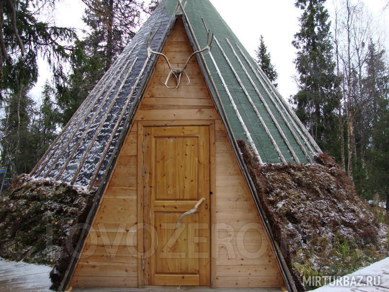 Маленький чум – жилище в традициях народов Севера для 3 человек. В чуме: печь, умывальник, столик, три односпальные кровати. Имеется три окна. Чум подходит для гостей, желающих увидеть звездное небо не вставая с кровати, а если посчастливится , то и Северное Сияние!