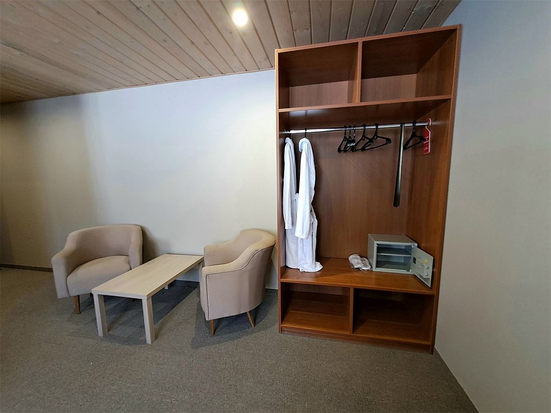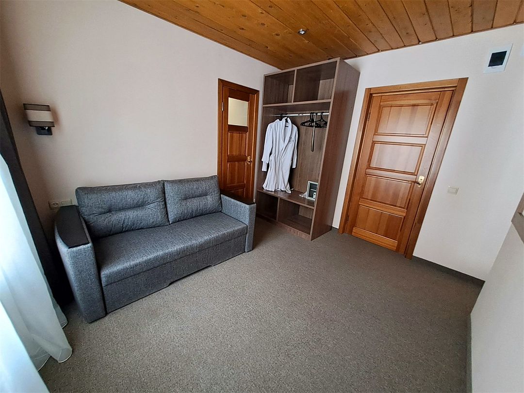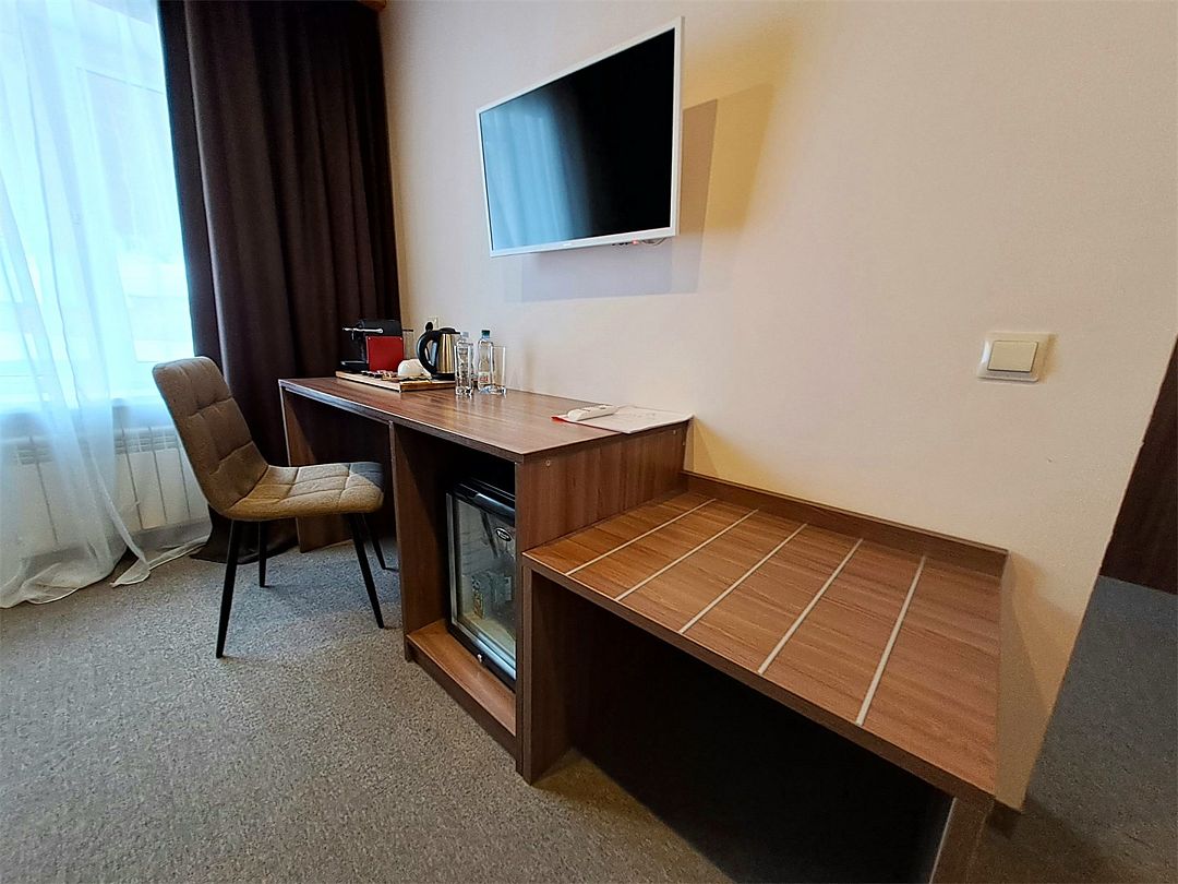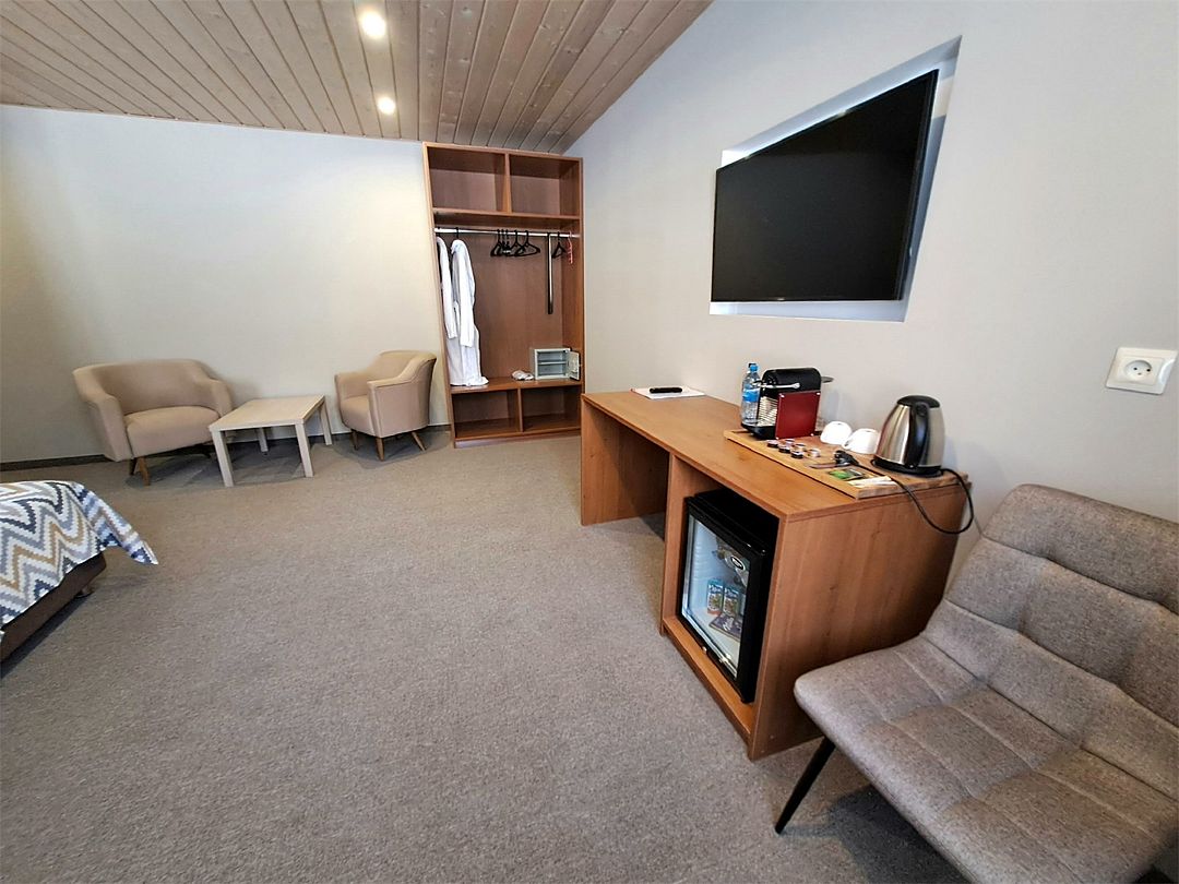 Комфортабельный однокомнатный номер, рассчитан на двух-трех человек. В номере есть все удобства (телевизор, туалет с душем, чайная станция, Wi-Fi, банные халаты, наборы полотенец, принадлежности для душа, тапочки, мини-бар).