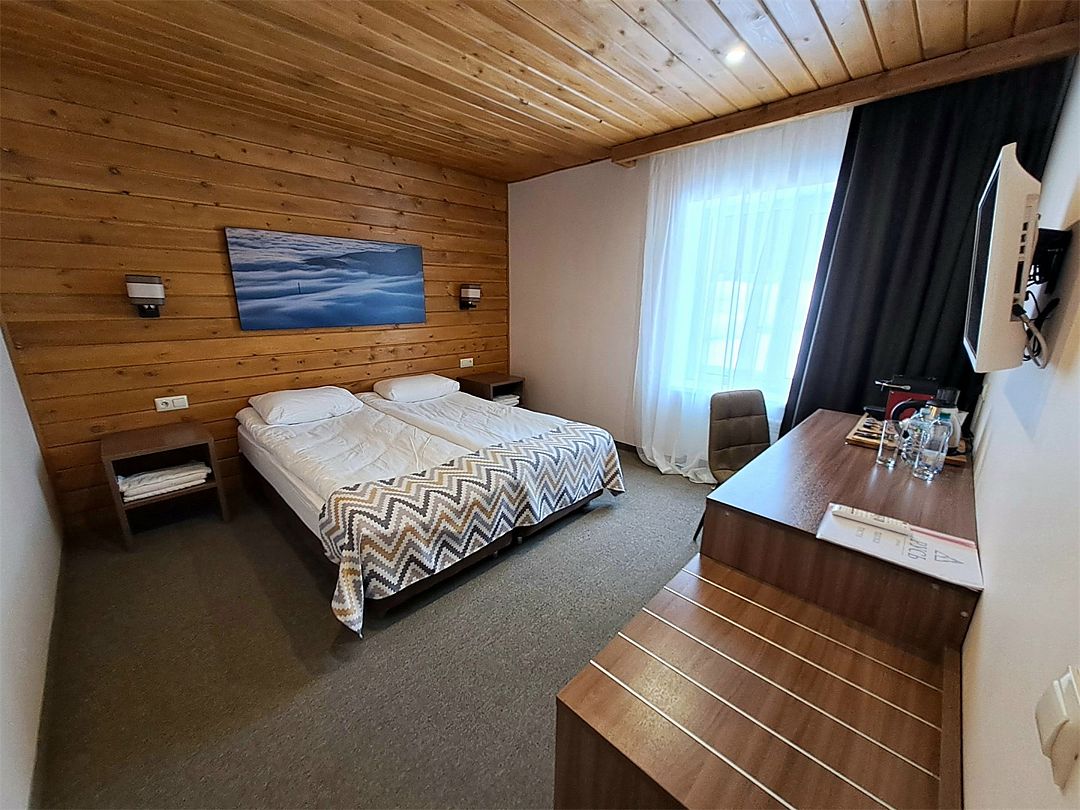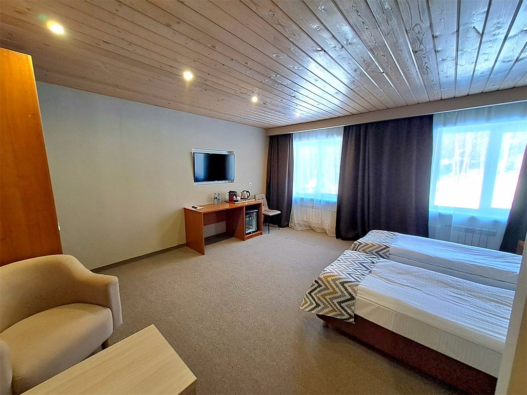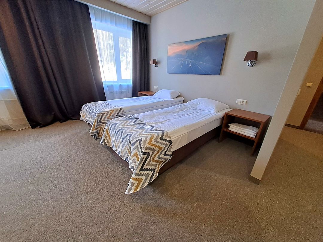 Комфортабельный двухкомнатный номер, рассчитан на четырёх человек. В номере есть все удобства (телевизор, туалет с душем, чайная станция, Wi-Fi, банные халаты, наборы полотенец, принадлежности для душа, тапочки, мини-бар).