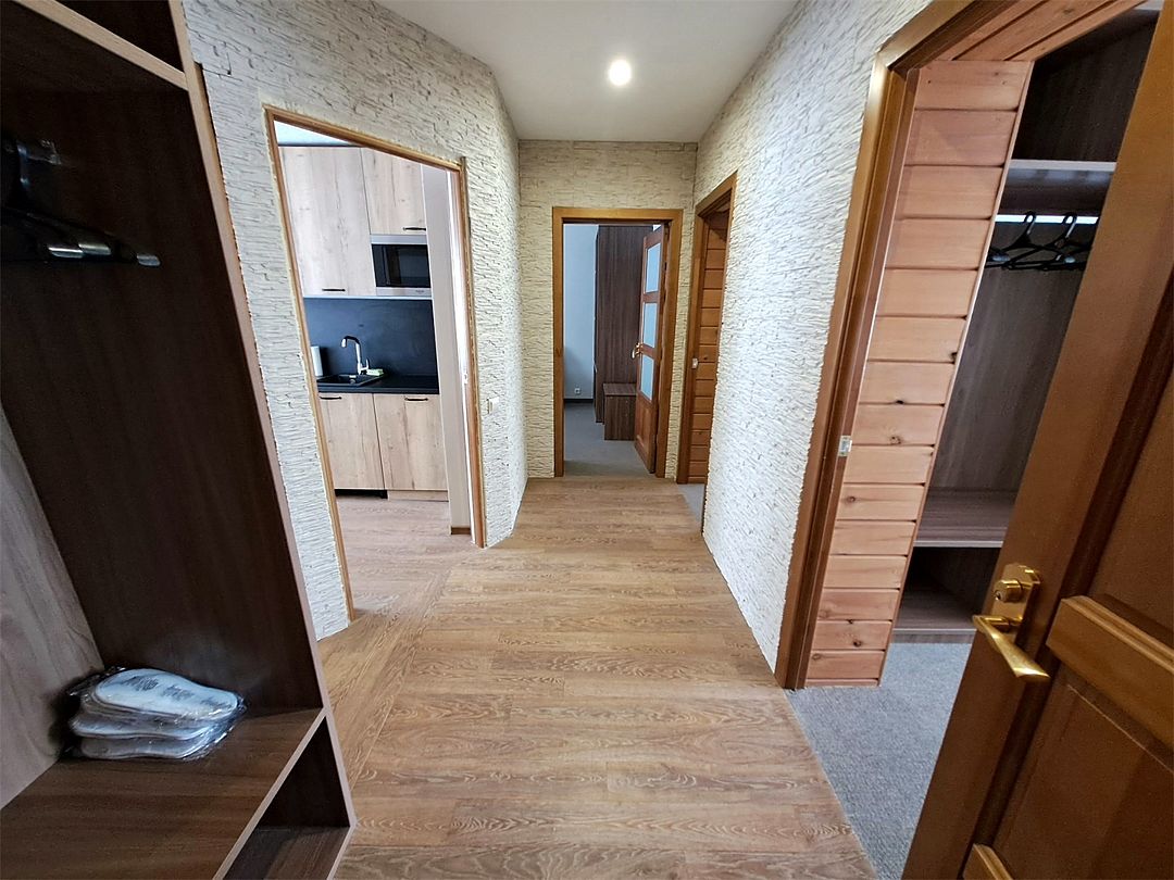 В номере есть кухня, оснащенная холодильником, индукционной варочной панелью, микроволновой печью, посудомойкой, вытяжкой. Две спальни с двуспальными или односпальными кроватями и просторная комната с двумя раскладными диванами. В качестве дополнительных мест предоставляются раскладушки. Спальни оснащены ортопедическими матрасами, шторами блэкаут. В санузле полы с подогревом. Так же предоставляются одноразовые тапочки, wi-fi.
