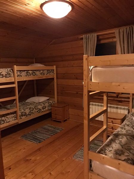 Вы оцените современные удобства и высокий уровень комфорта. Для проживания доступен утепленный вагончик и уютный двухэтажный дом с четырьмя спальнями, каминным залом с TV, кухней с необходимой техникой и сауной. Три спальни оснащены индивидуальными санузлами с душевыми кабинами.