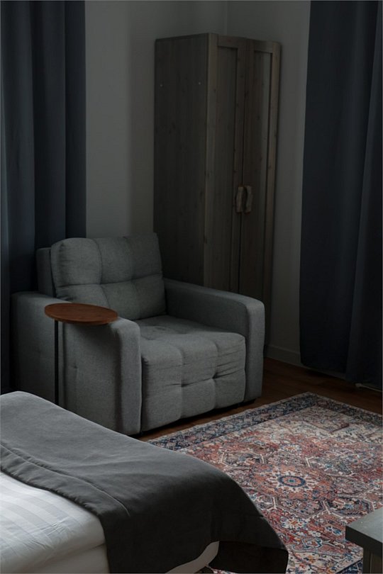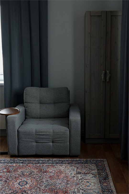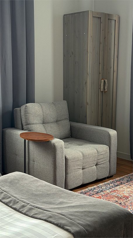 Размещение 1-4 человек Кровать трансформер Площадь номера — 30 м2 Уютный и большой номер с окнами, выходящими на тихий внутренний двор. Два кресла-кровать, который по необходимости раскладывается, как два дополнительных места.Услуги и удобства