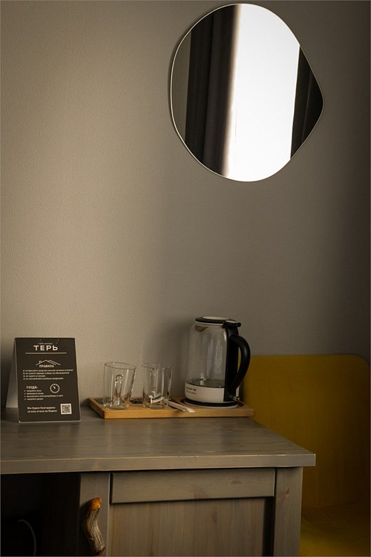 Короткий отпуск с друзьямиОчень рекомендуем остановиться в гостинице Терь!Замечательная гостиница! Номера простые, но, что самое главное, чистые, в них приятно находиться, есть всё необходимое. На первом этаже ресторан, морепродукты и рыба были очень вкусными, цены адекватные, есть видовая терасса. Отдельно хочется отметить отзывчивость сотрудников, которые нас выручали на протяжении всего отдыха. В общем 5 звёзд! Спасибо за комфортный отдых!