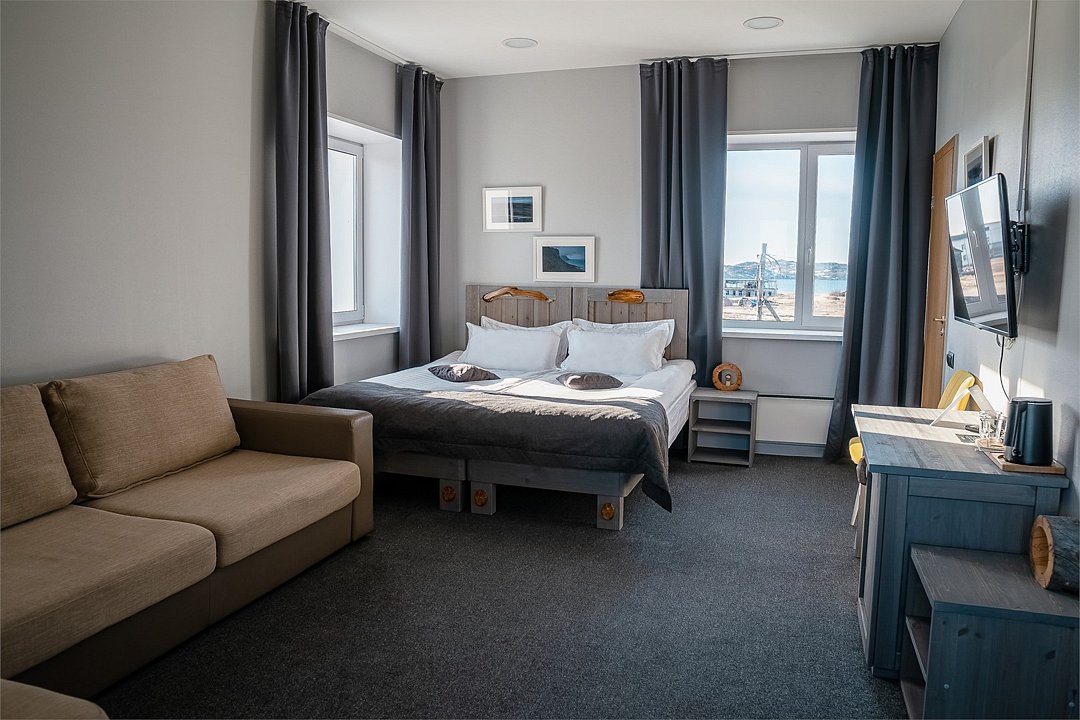 нояб. 2022 г.Прекрасный уровень!В Териберке мало гостиниц в классическом смысле слова, в основном, это гостевые и частные дома. Мы бронировали буквально за 2 дня, были места только здесь.