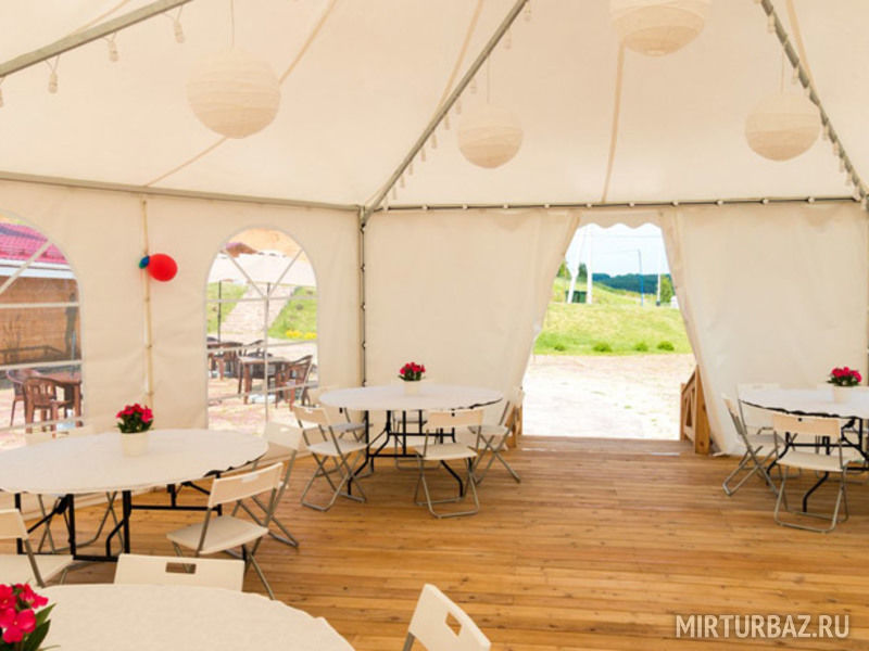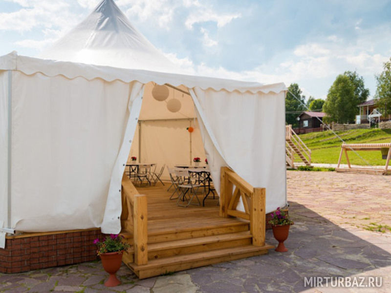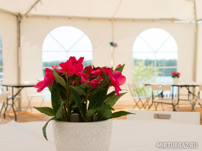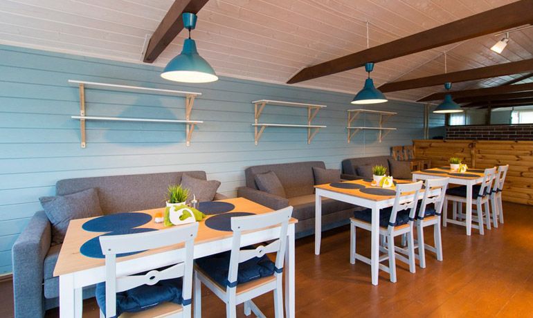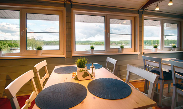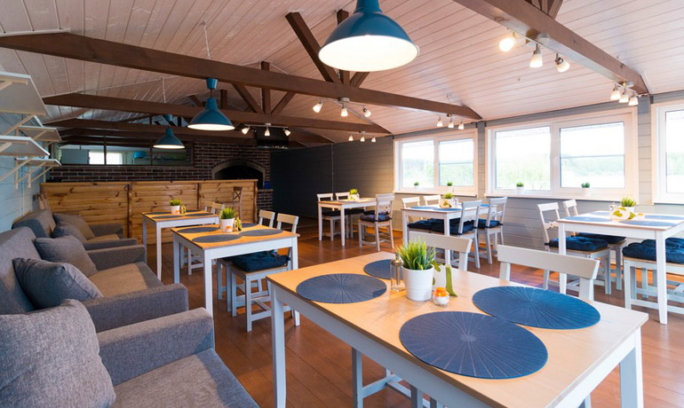 Каждый день Вас готовы принять и угостить вкуснейшими блюдами из русской кухни. Уютный зал на 36 человек с двумя открытыми стенами и видом на озеро подарит ощущение единения с природой и сделает трапезу еще аппетитнее.