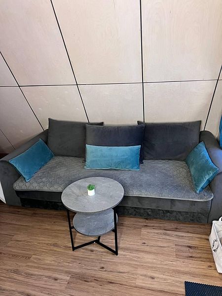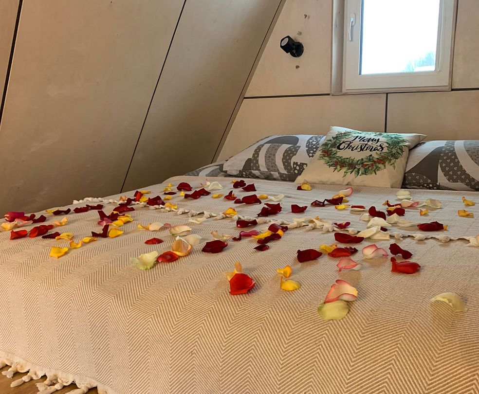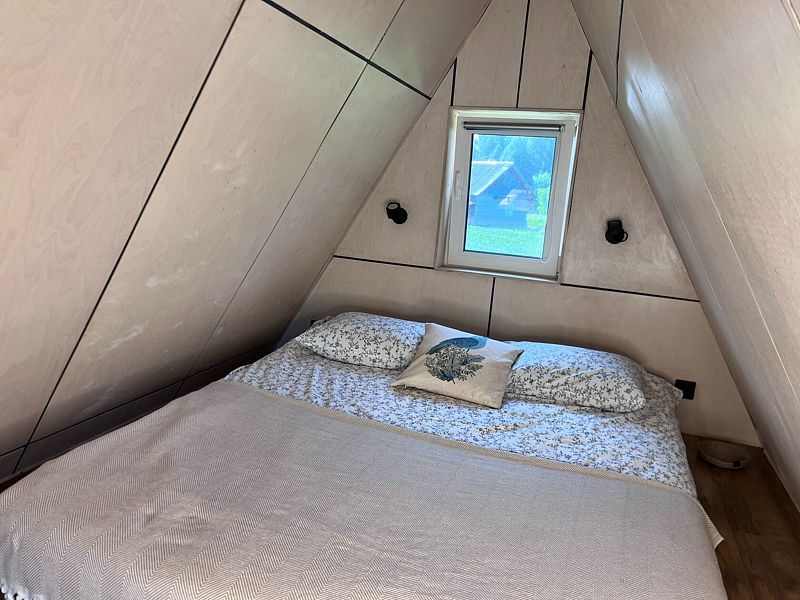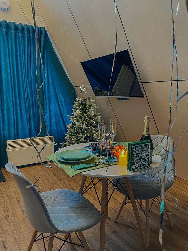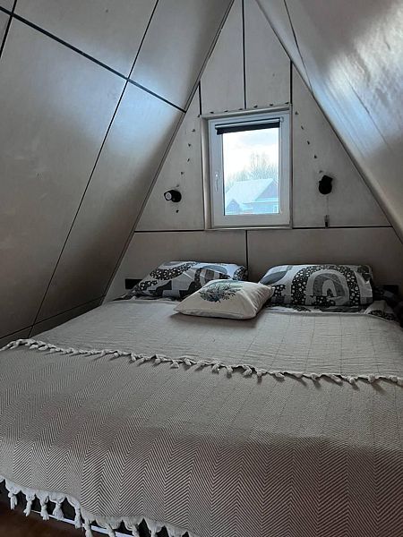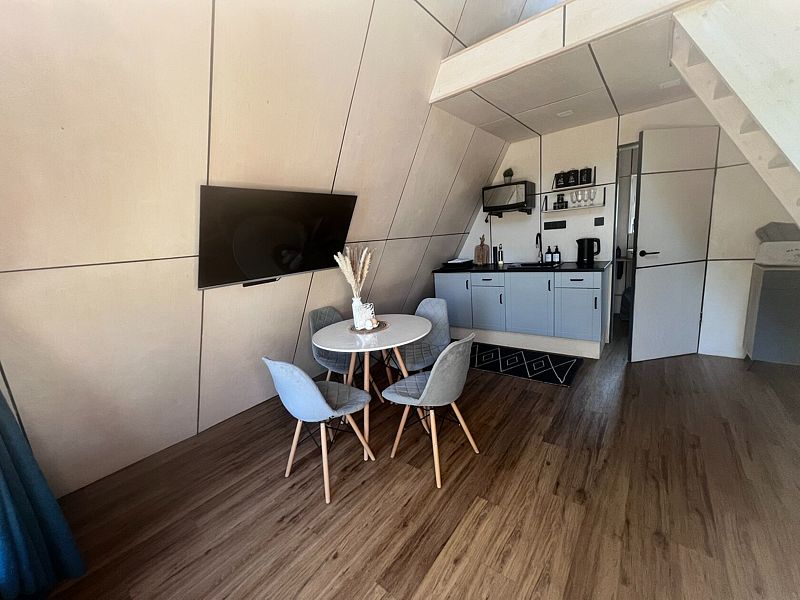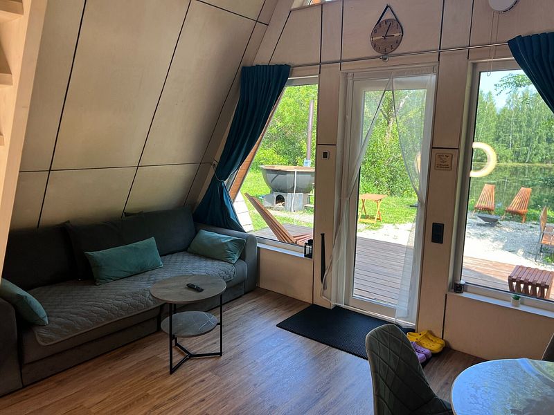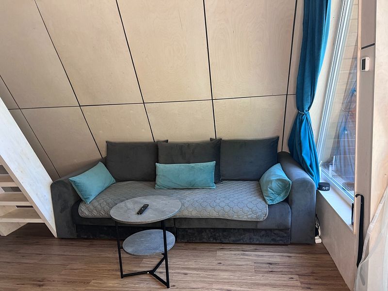Дом рассчитан на 4 человек, полноценное двуспальное место на втором этаже и большой шикарный диван на первом этаже.