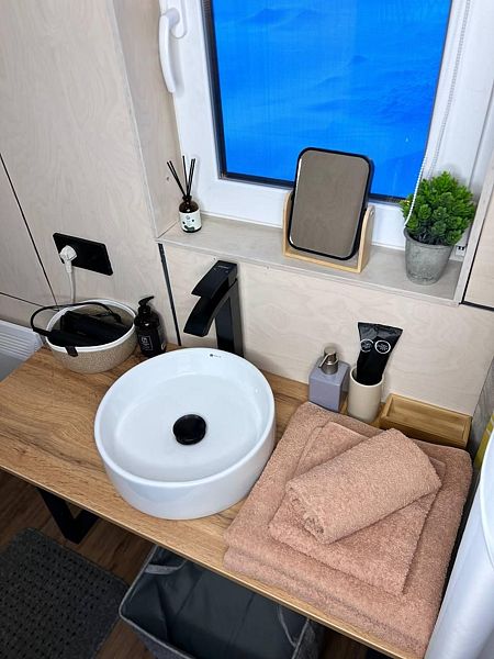 Дом оснащен всем необходимым для проживания. Спальные места представлены уютной кроватью и двуспальным диваном. В собственной ванной комнате имеется набор полотенец и гигиенические принадлежности. Также в доме установлен телевизор и имеется Wi-Fi.