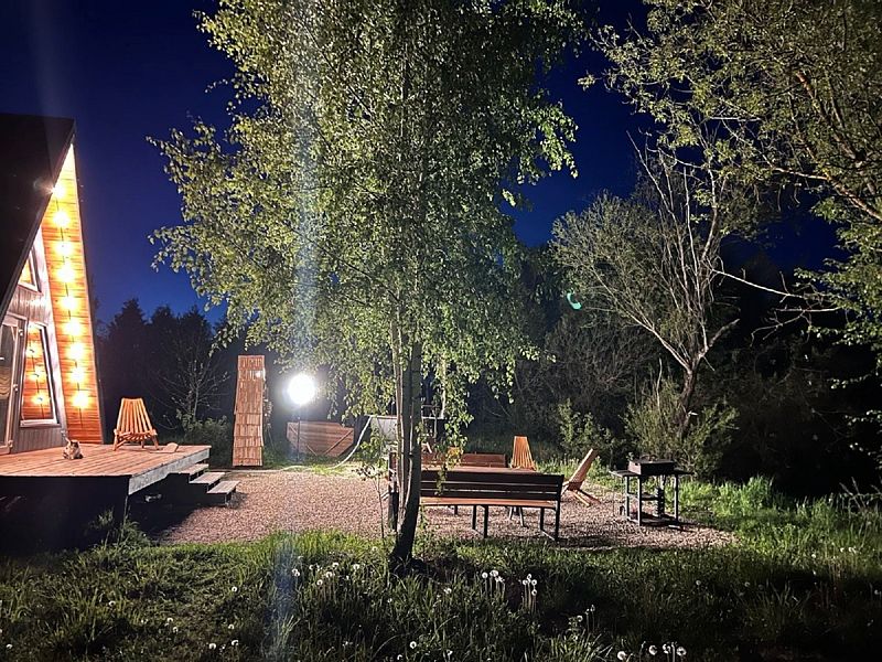 Гостевой дом «A-Frame Гнездо» расположился на берегу реки в деревне Фаладово Нижегородской области. В вашем распоряжении комфортабельный A-Frame, облагороженная территория, тишина и спокойствие.