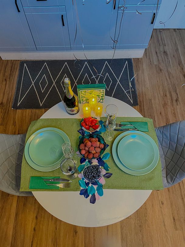 Украшение дома к вашему приезду, сервировка стола, украшение лепестками роз или воздушными шариками.