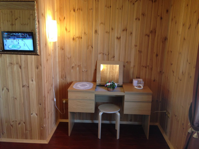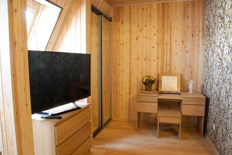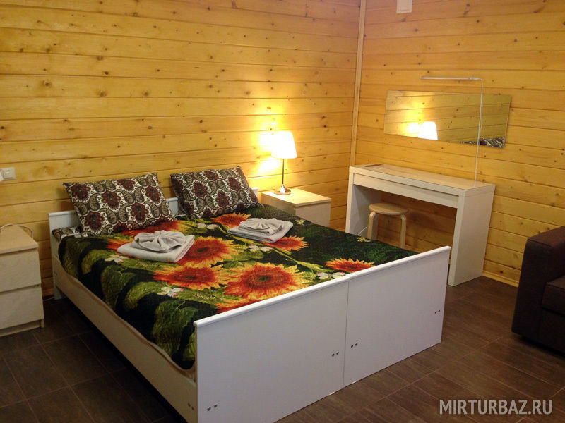 Коттедж расположен недалеко от озера. Состоит из двух изолированных комнат на разных этажах, площадь каждой комнаты 25 м². В комнате на втором этаже есть балкон с видом на озеро. В каждой комнате есть большая двуспальная кровать и диван-кровать. В коттедже есть два туалета и ванная комната с душем. Всего коттедж может вместить до 8 человек, включая детей.