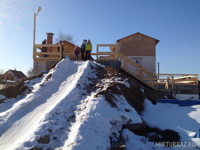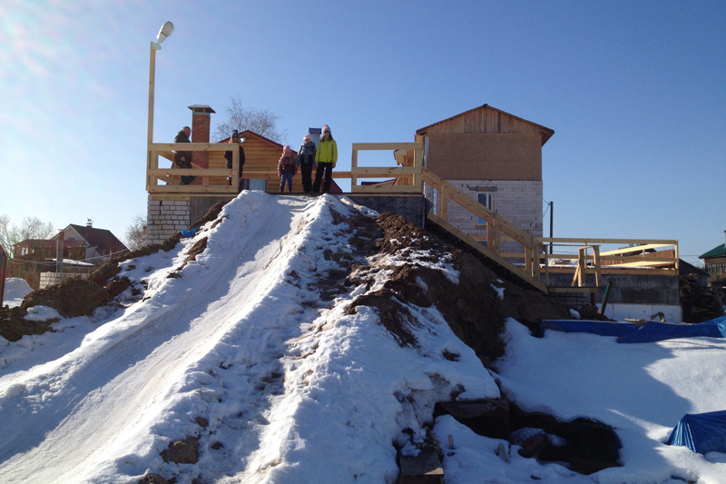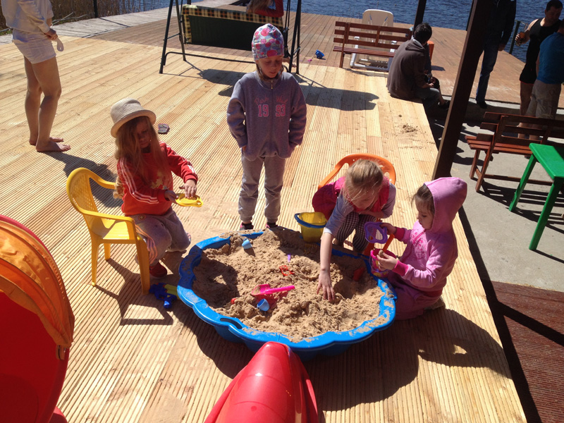 В летнее время в Гостевом доме есть детский городок с домиками, песочницей, надувным батутом, качалками и многими другими игрушками.
