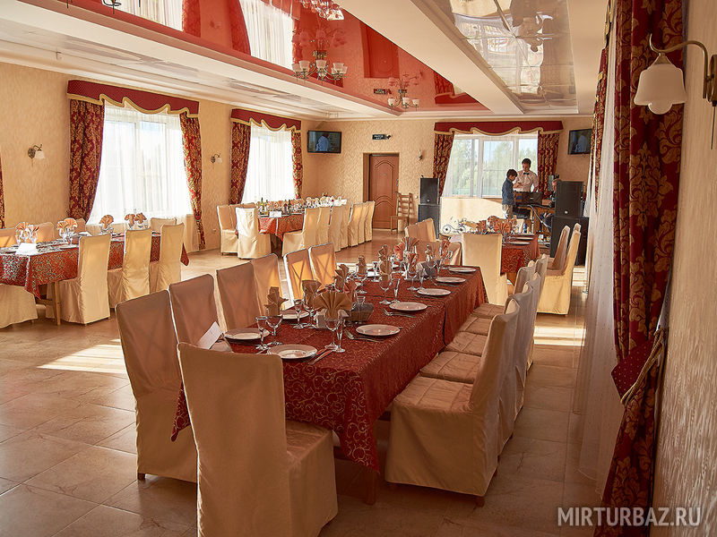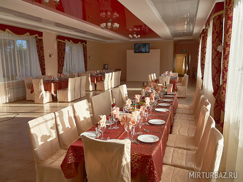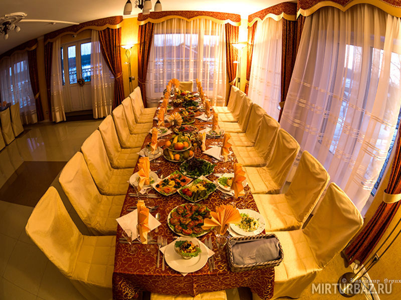 Для проживающих организуется трехразовое питание по заказной системе. Для проведения банкетов и корпоративных мероприятий есть отдельное меню.