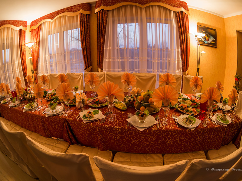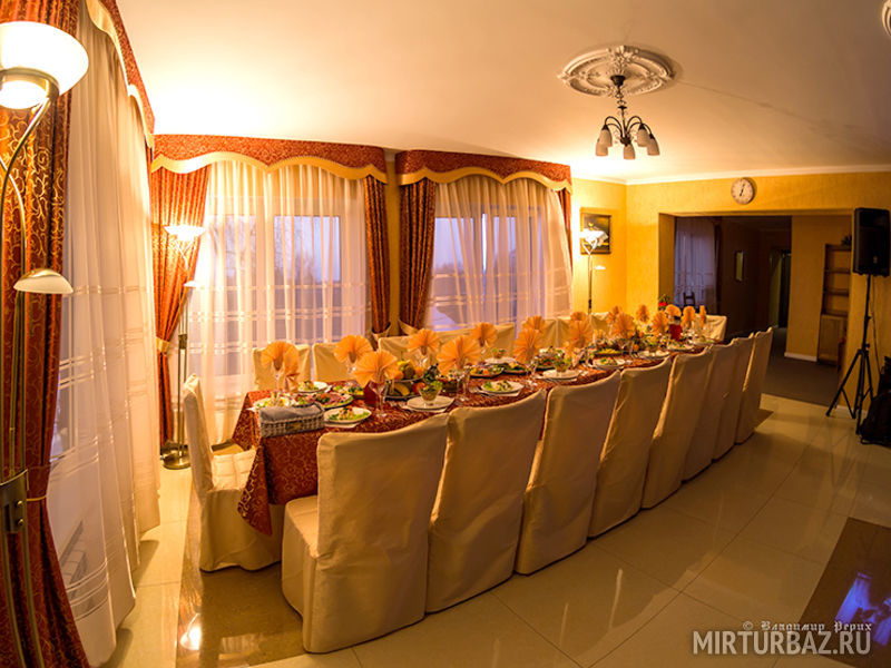Праздничный ужин в банкетном зале на втором этаже главного корпуса, дискотека по желанию (диджей оплачивается отдельно). Бильярд, караоке, настольный теннис. По желанию приглашается ведущий и организуется шоу-программа (оплачивается отдельно).