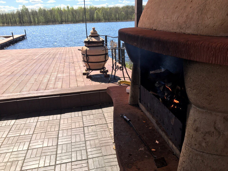 Камин, мини водопад, белые кожаные диваны, прекрасный вид на все озеро (окна в пол) – все это безусловно скажется на положительном результате любых переговоров.
