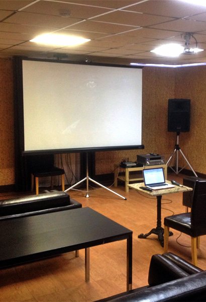 Затемненный зал идеален для просмотра бизнес проектов и презентаций на большом экране.