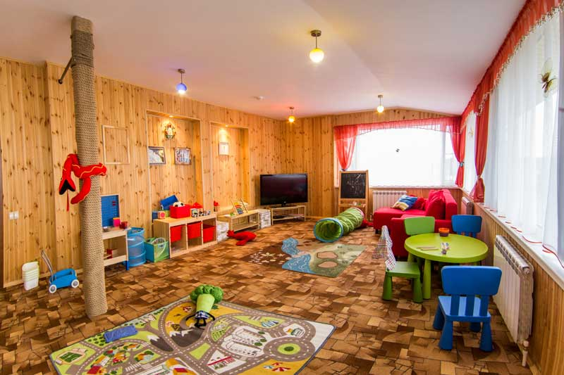 Детская игровая комната размером 40 м² расположена на втором этаже главного корпуса рядом с банкетным залом - даже в разгар праздника Ваши дети не останутся без присмотра родителей! Комната оборудована детской мебелью, спортивными снарядами, ЖК-телевизором с DVD-плеером и большим количеством разнообразных игрушек.