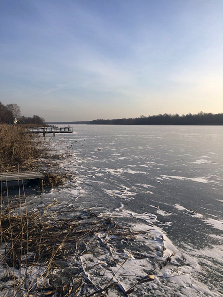 Огромный пирс размером 12 на 4 метра на расстоянии 20 метров от берега с удобным заходом в воду.