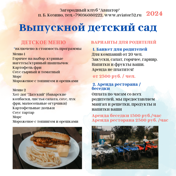 Читать полностьюРесторан «Авиатор» идеальное место для проведения свадьбы, корпоратива, дня рождения, выпускного и любого другого радостного события в жизни. Отличительная особенность ресторана — это его неповторимый дизайн, разработанный специально для загородного клуба. Все предметы и интерьера сделаны собственными руками, что придает заведению особенную атмосферу.