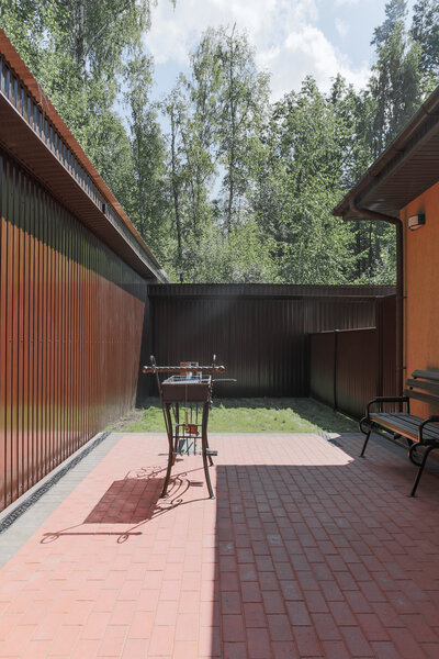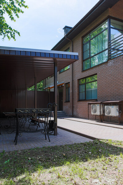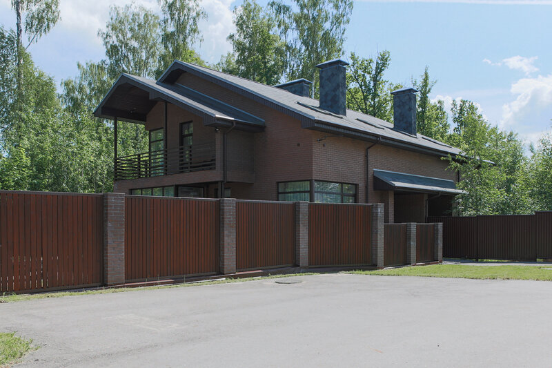 - Дом построен из керамического блока, облицовка — клинкерный кирпич концерна CRH