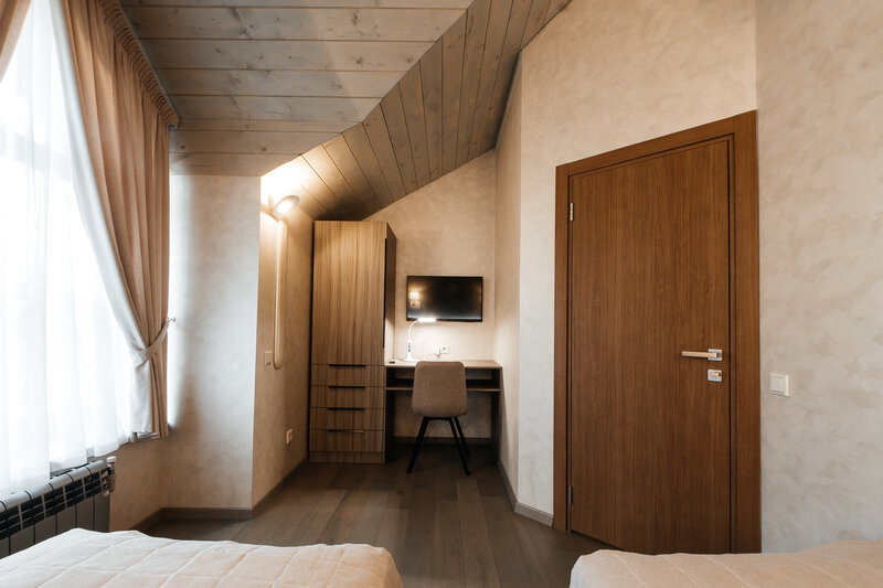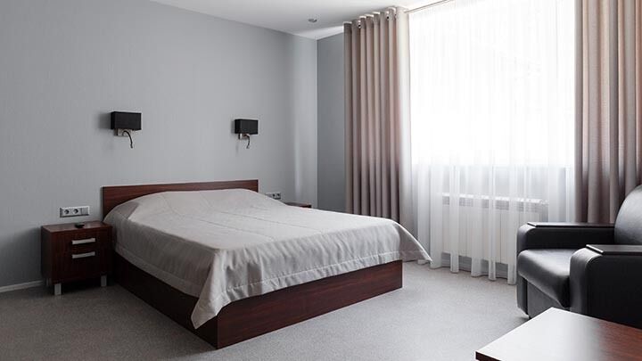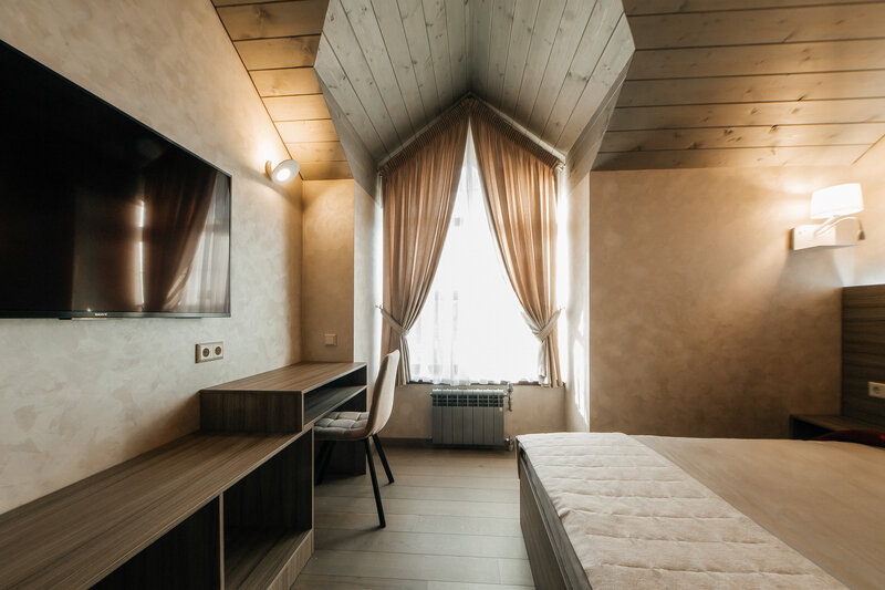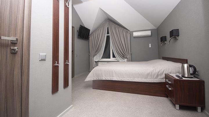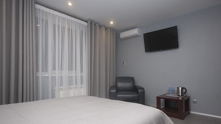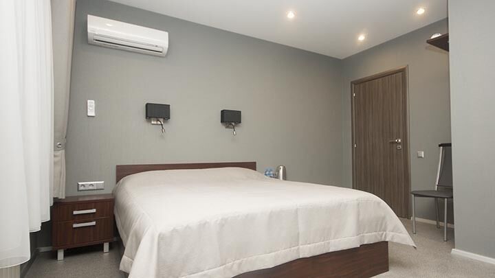 В номерах современный ремонт. Всегда тепло и есть горячая вода. Большая двуспальная кровать, телевизор, сейф, чайник, кондиционер. Бесплатный Wi-Fi.
