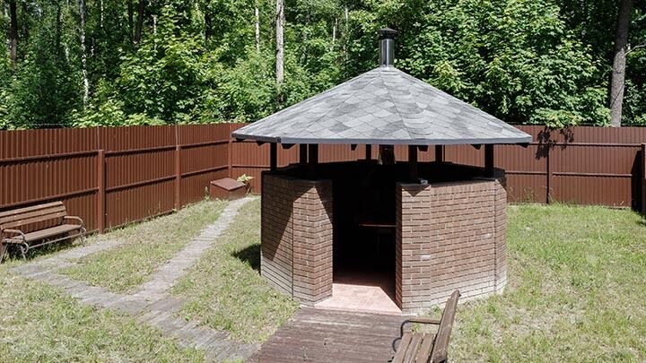 - беседка с жаровней на придомовой территории, принадлежности для мангала (шампура, решётка, опахало) — коттеджи «Люкс» и «Стандарт»;