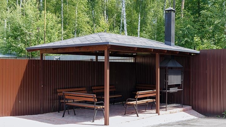 В стоимость беседки включены мангал, биотуалет, охраняемая парковка.