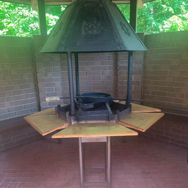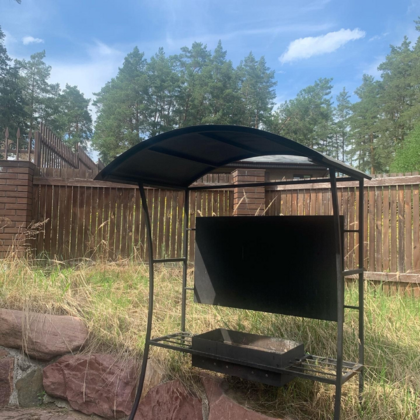 - беседка с печью для казана (гриль + мангал), принадлежности для печи (шампура, опахало, половник, шумовка, лопатка, стартер) — «Люкс-2»;