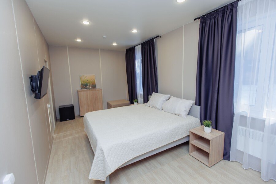 Для вашего удобства — телевизор с разнообразием каналов и кондиционер, создающий идеальную температуру в любое время года. Плотные блэкаут шторы помогут вам насладиться крепким сном в любое время суток, а кулер с горячей и холодной водой на этаже всегда под рукой.
